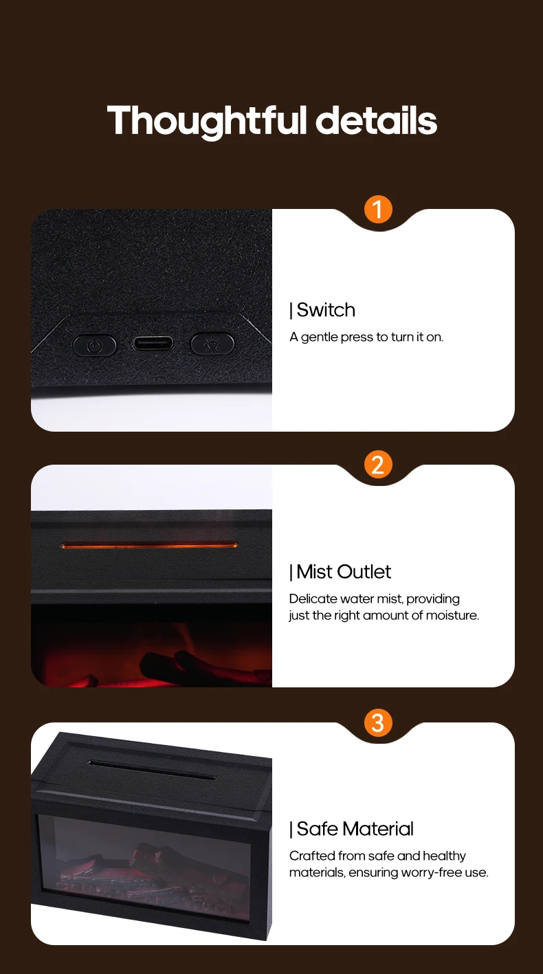 🔥 Realistic Flame Effect: Cozy fireplace glow — no smoke, no heat.